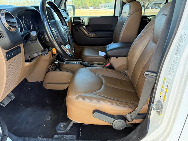 3.6L V6 engine with Automatic transmission, White with Tan Leather interior, 110,531 miles, If you're looking for a true off-road beast that turns heads everywhere it goes, This Rubicon is it! This one is already built the way most people want one — featuring a suspension lift, aggressive 20 in. alloy wheels, and massive 37x12.50 All-Terrain tires that give it an incredible stance and serious trail capability. features include White 3 piece hard top, Connectivity Group (Remote USB Port, Uconnect Voice Command w/Bluetooth, and Vehicle Information Center), AM/FM/CD/MP3, Navigation, SiriusXM, Heated front leather bucket seats, power windows, heavy duty front bumper and step rails, light bar, power locks, limited slip differential, cruise control, steering wheel mounted controls, skid plate, rated at 20 - 21 hwy MPG and 16 city MPG, $21,900